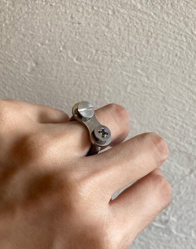 建築材料であるステンレスの皿ビス(プラスとマイナス)をデザインしたリングです。
